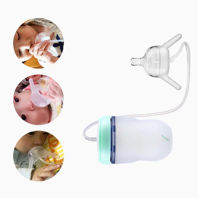 Esta mamadeira dá ao seu filho a liberdade de beber o leite sozinho, sem que você tenha que segurá-lo por um longo período de tempo (um supervisor deve estar presente com a criança o tempo todo). A Mamadeira Baby Conforto™ também foi projetada especificamente para ser semelhante à amamentação natural .